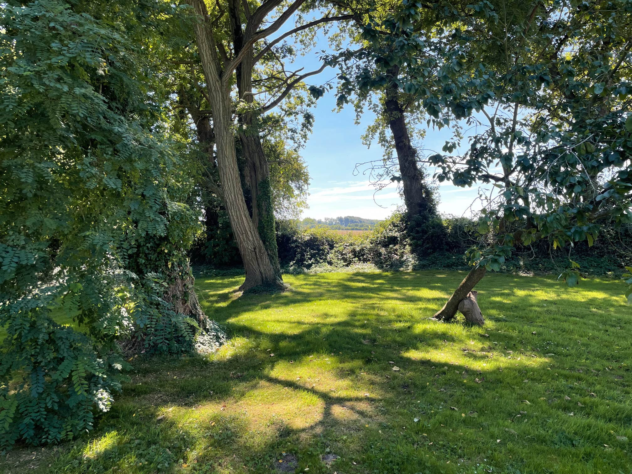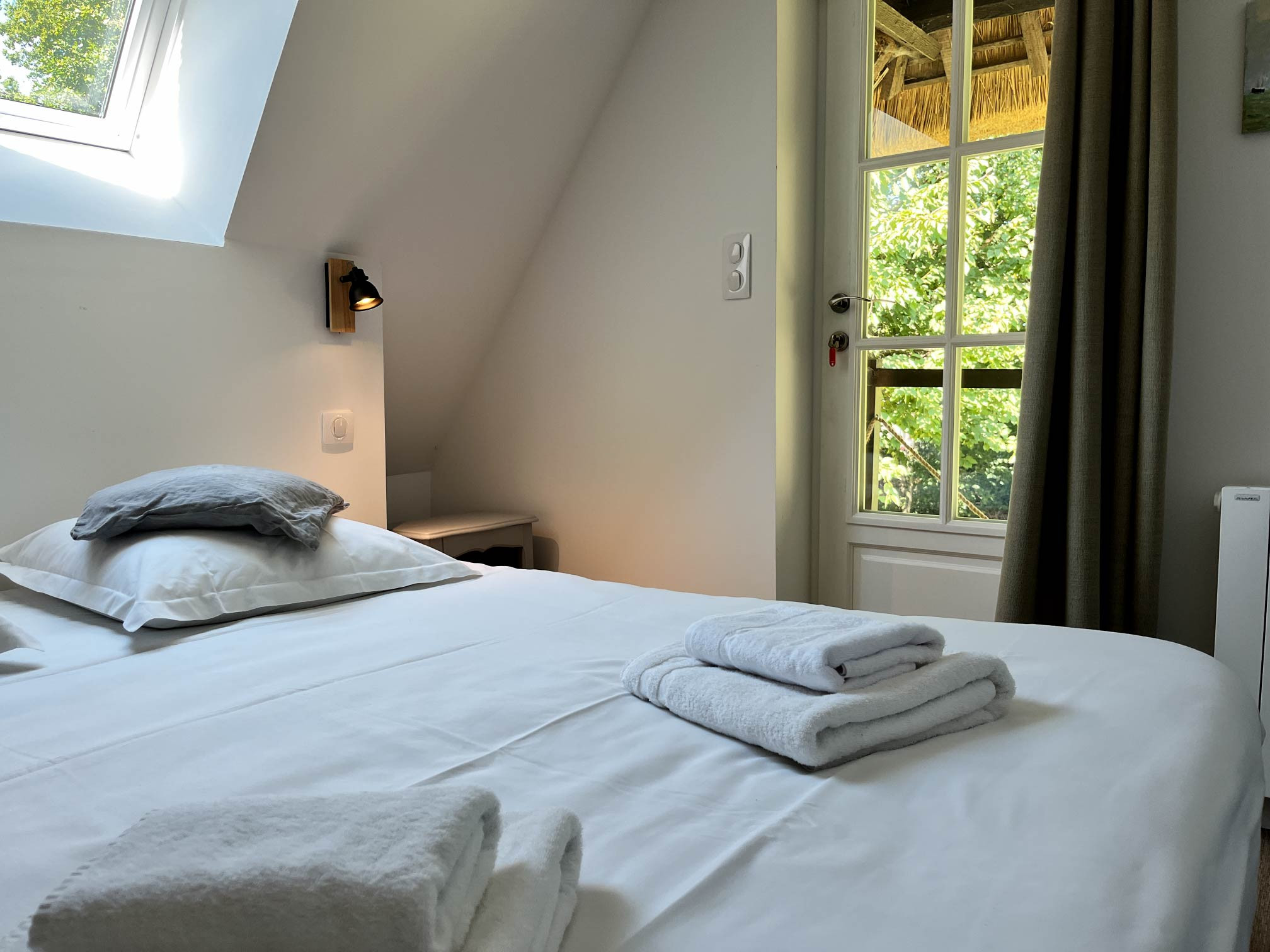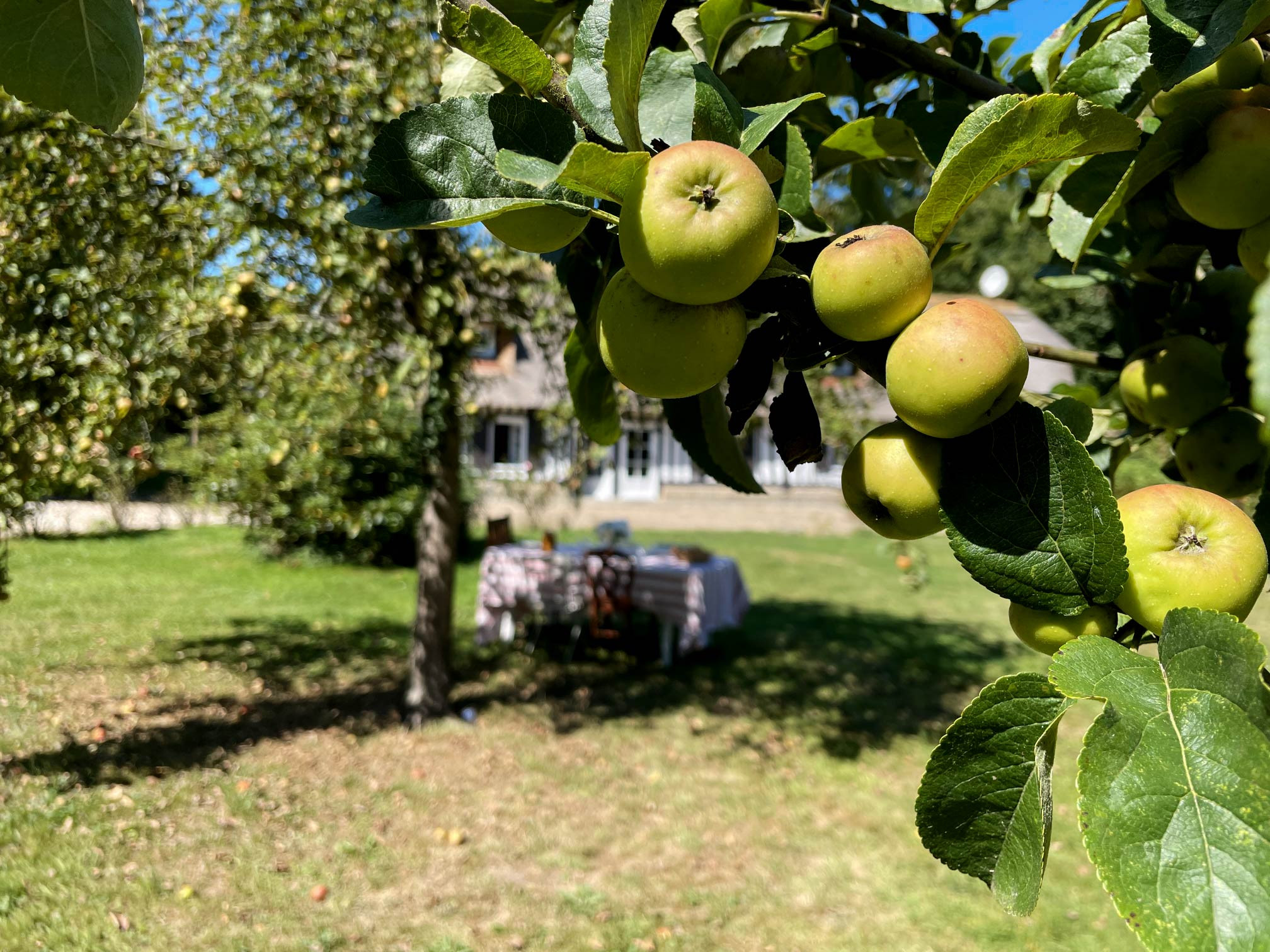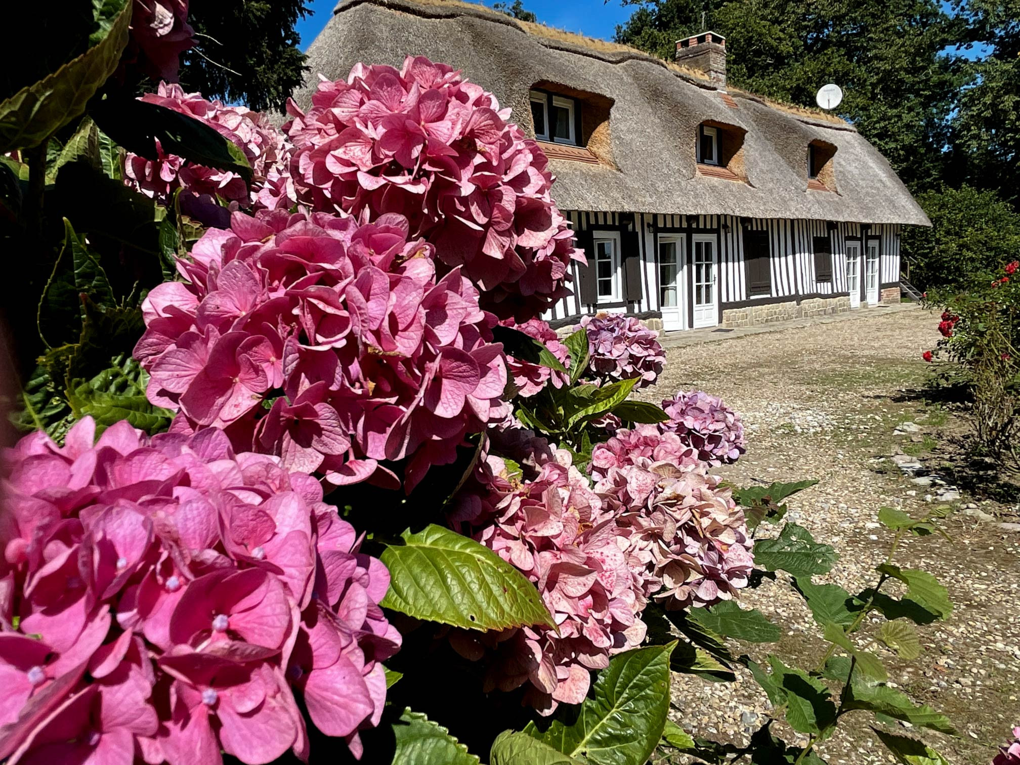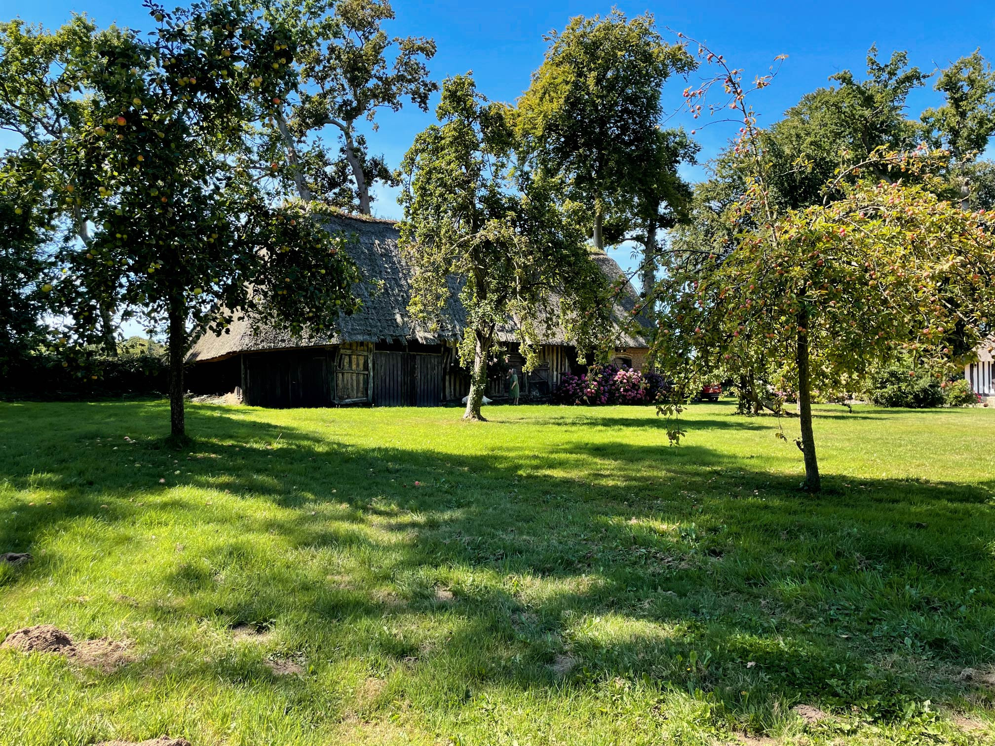 Le chaume et la charpente ont été refaits en 2024, l’intérieur de la maison a été rénovée en 2025 dans l’esprit du lieu. Son jardin ceint d’une haie de chênes est riche en arbres fruitiers, rosiers, framboisier, herbes aromatiques…
