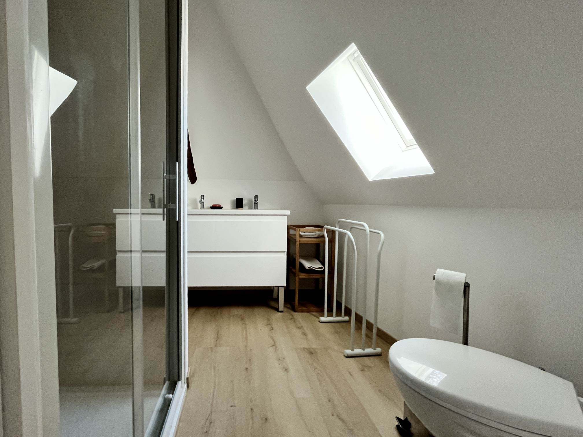 Une belle chambre ( lit 160 cm) et une salle de douche et un WC indépendant complètent le rez-de-chaussée.